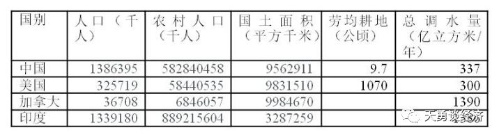 本文重要的结论是:与美国、加拿大和印度相比,中国虽然是人口和国土大国,但不是一个水利和国土强国;问题之关键在于,水资源人均水平太低,南部水丰,北部和西北干旱,地区分布极不均衡。然而,中国并不是没有水资源可再配置,也不是没有可改造利用的国土。中国有近40亿亩未利用土地,占陆地面面积的28%,其中其他草地、盐碱地、沼泽地、沙地和裸地有35亿亩之多。大量地分布在北部和西北部。虽然我们是人口规模第一大国,但人口每平方公里密度大大低于日本、韩国、英国、德国、印度。这说明我们有着经济继续持续发展非常大的回旋余地。水资源是其他一切经济生存和发展不可缺少的最基本资源,而土地则是财富之母。